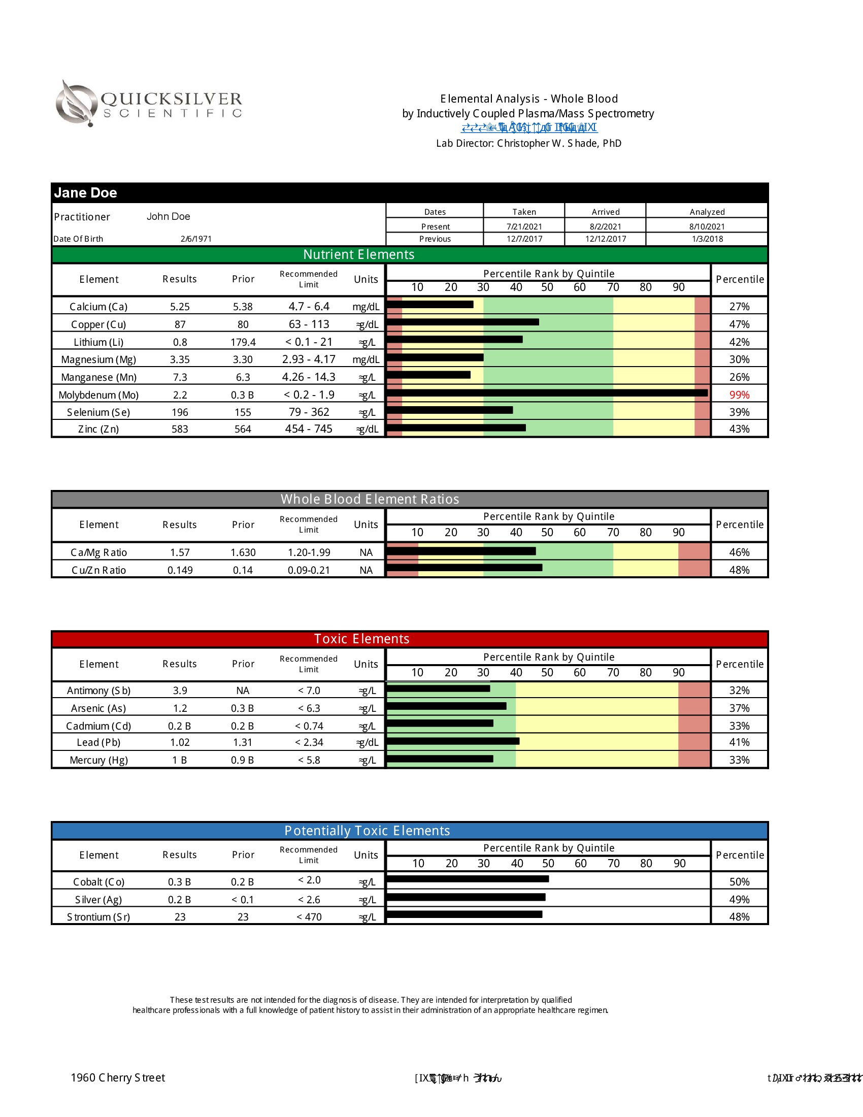 - Quicksilver Scientific’s Blood Metals Panel screens for 16 metals – a broad range of nutrient and toxic metals to show elevated exposures to toxic metals or imbalances of nutrient metals in whole blood.