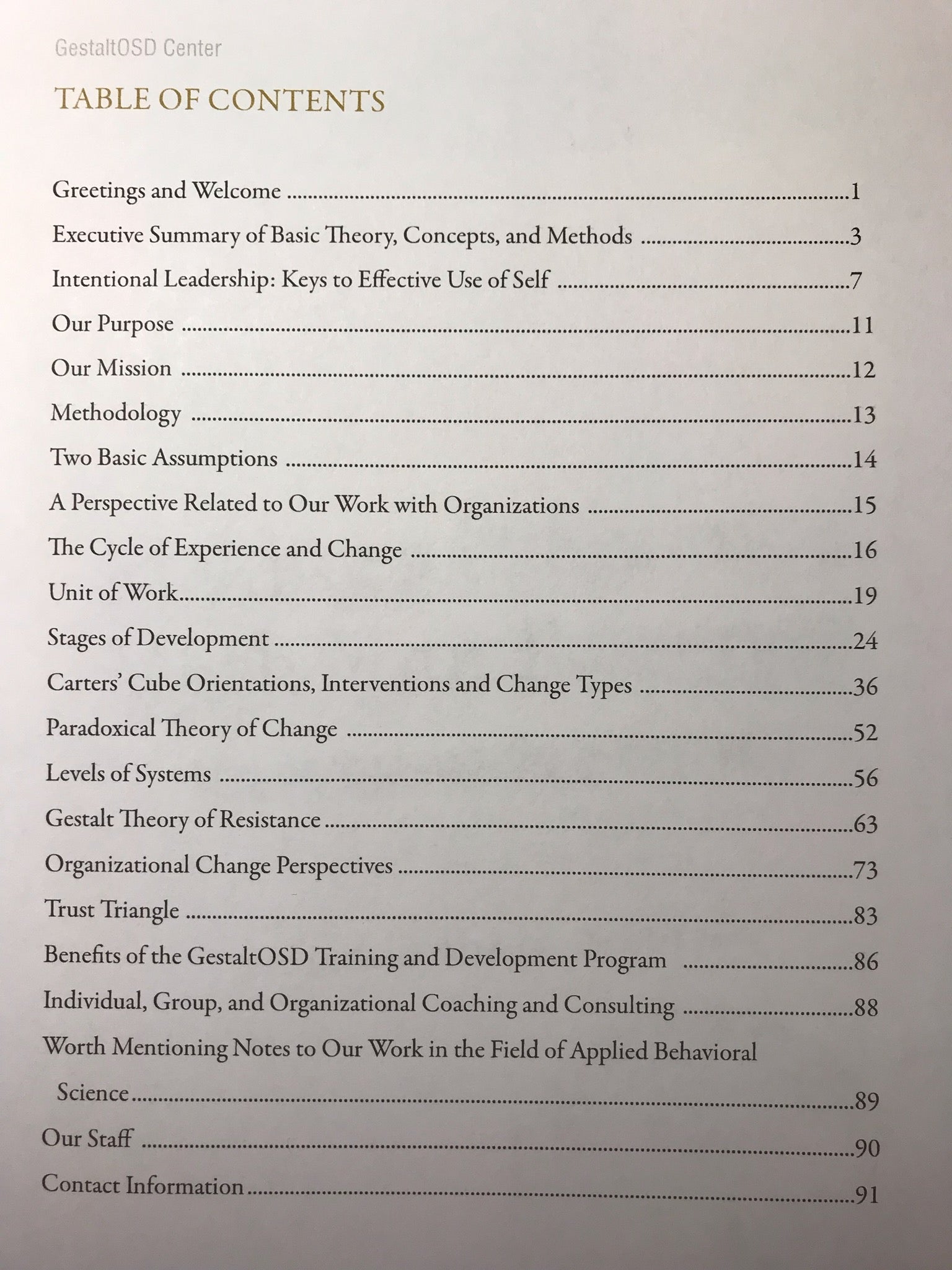 It is not a text book, it is not a workbook, nor a reference manual. It is a compilation of our working theories and concepts that mirror your own natural human processes. We expect you will see yourself and your own processes as your read and reflect. What we hope to add, as we have for most of our years as educators, are simple ways of seeing and making meaning. Gestaltosd theories, concepts, and frames of reference support you to enhance, and cultivate your self-mastery and use of self. You will increase your awareness of what is — that which already exists within you.
