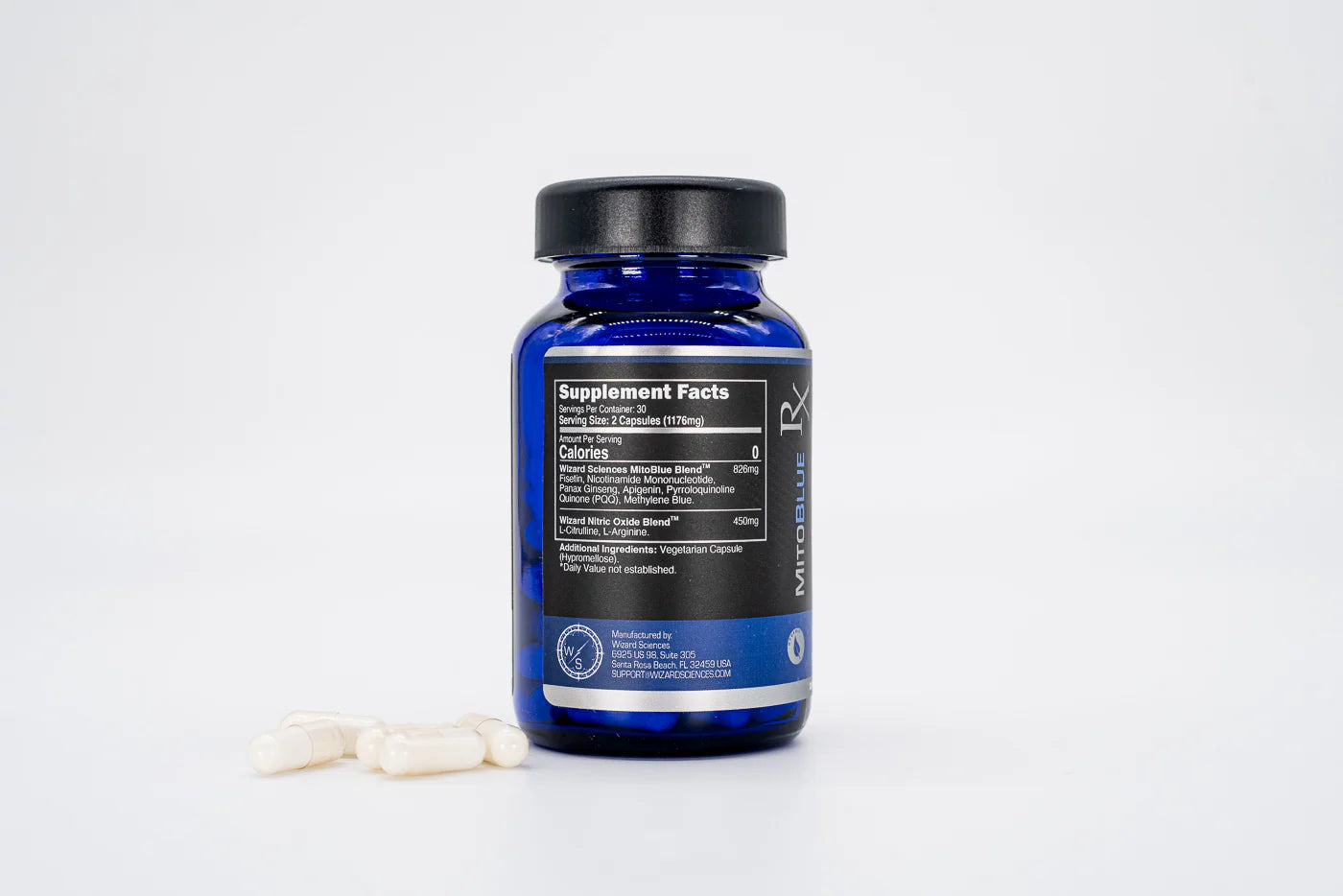 MitoBlue doesn’t rely on one superstar ingredient; it’s the synergy that makes it so effective. Each ingredient supports the others in a loop of mitochondrial support, NAD+ regeneration, inflammation reduction, and cognitive clarity. The result is a clean, non stimulant formula that works with your biology..not against it.