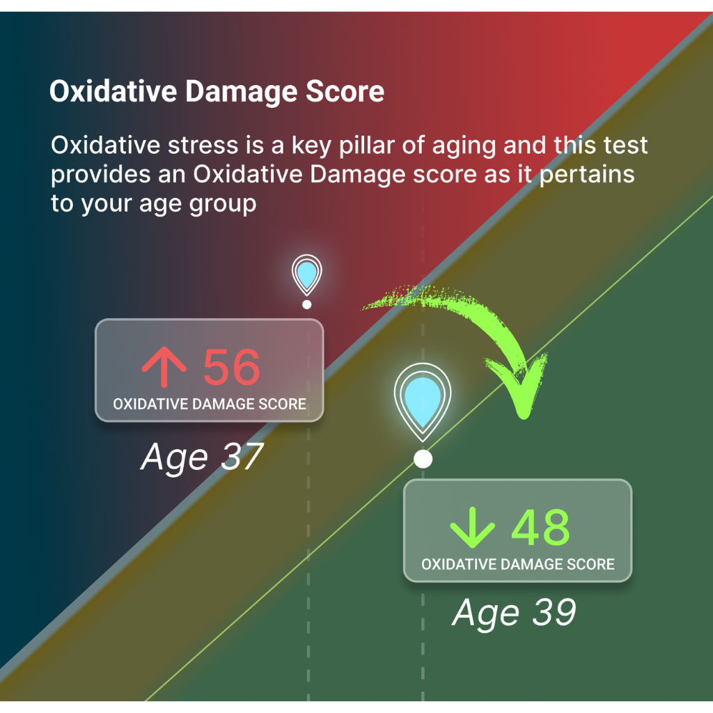 Vibrant Oxidative stress is a comprehensive and advanced test that measures 16 oxidative damage markers to your DNA, RNA, protein, Lipids and 32 genetic variants to personalize your genetic disposition to Antioxidant enzymes.